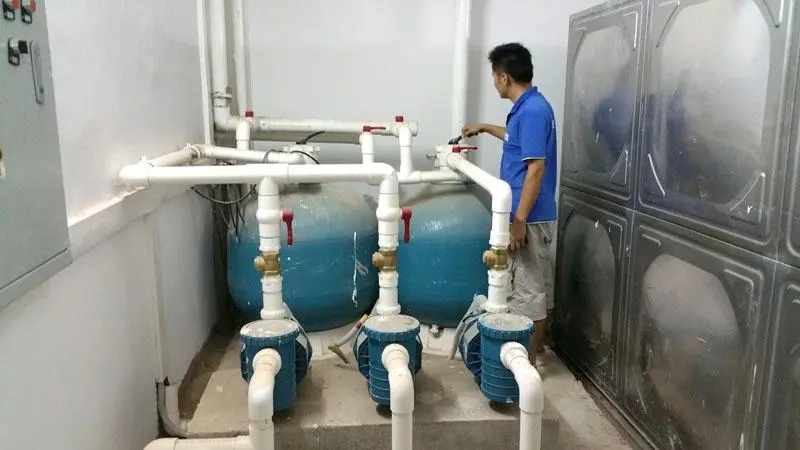 泳池水循環(huán)凈化系統的原理是通過(guò)將游泳池水流經(jīng)過(guò)濾器、加熱器、消毒劑、除藻劑和吸附劑等材料,對水質(zhì)進(jìn)行過(guò)濾、加熱、消毒、除藻和吸附過(guò)程,以達到清潔水質(zhì)的目的。